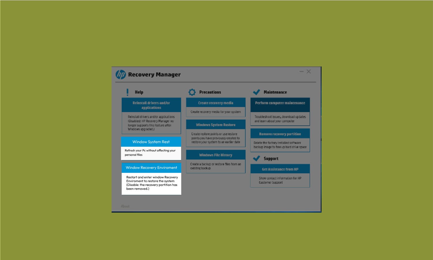 Here is how to reset HP Laptop using Windows Recovery Environment: