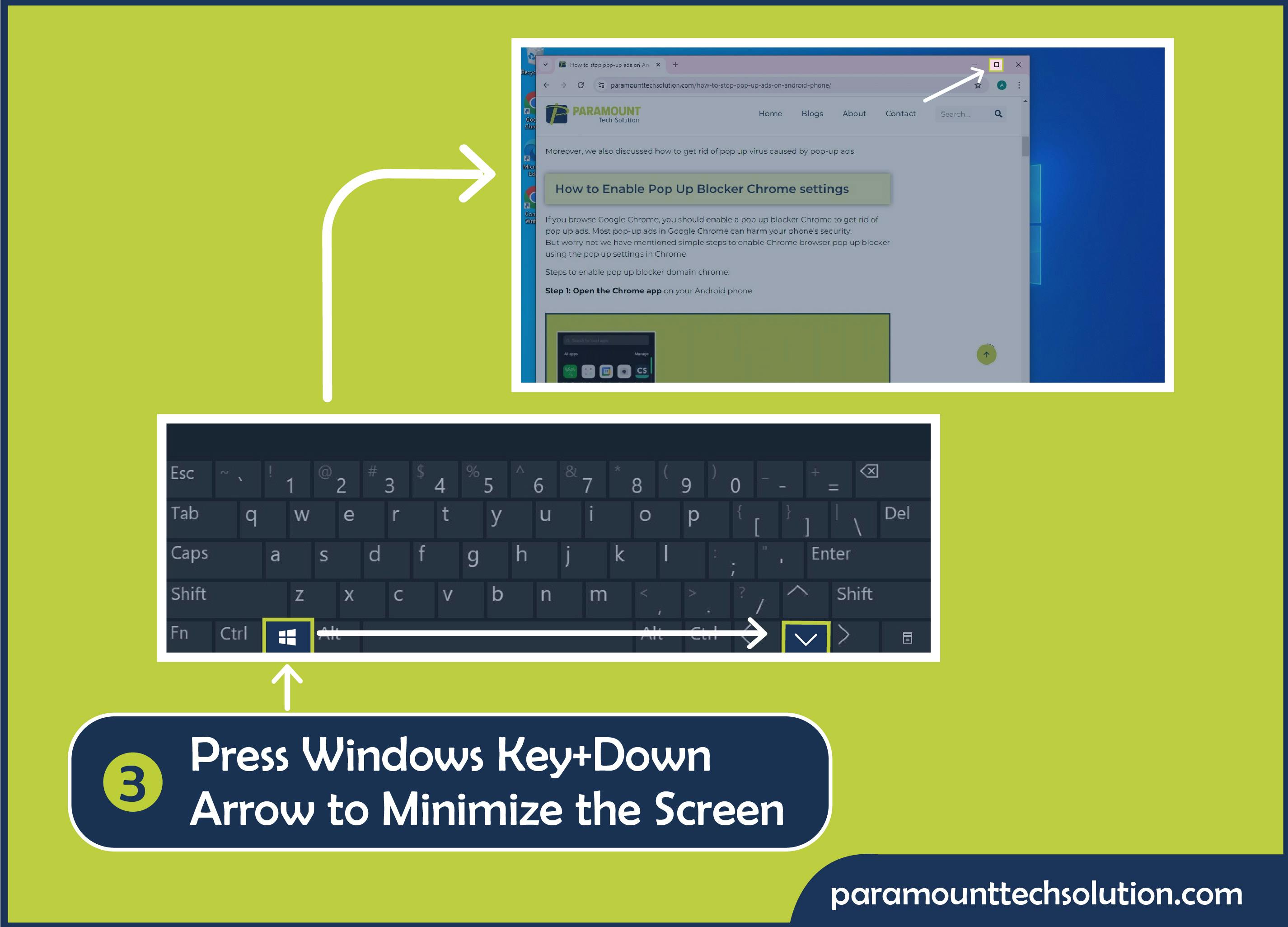 Step 3: Press Windows key with Down Arrow for the half screen windows.